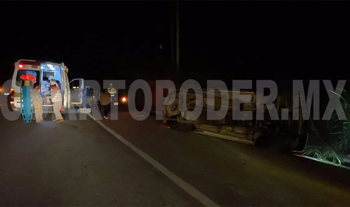 TUXTLA GUTIÉRREZ. Un vehículo volcó en el tramo carretero Tuxtla Gutiérrez-Ocozocoautla, a la altura del autódromo, y resultó malherida una familia.