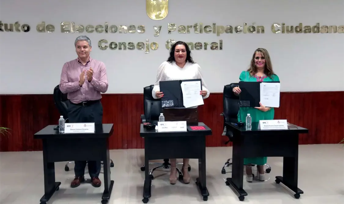 El Instituto de Elecciones y Participación Ciudadana (IEPC) de Chiapas y el Consejo de Notarios del Estado llevaron a cabo la firma del Convenio de apoyo y colaboración con la finalidad de otorgar el servicio notarial necesario durante la Jornada Electoral del Proceso Electoral Local Ordinario 2024. Por parte del órgano electoral, signaron este acuerdo, la consejera presidenta provisional María Magdalena Vila Domínguez, el Secretario Ejecutivo Manuel Jiménez Dorantes, mientras que, por el Consejo de Notarios, estuvo su presidenta, Rosario Chacón Sánchez.
