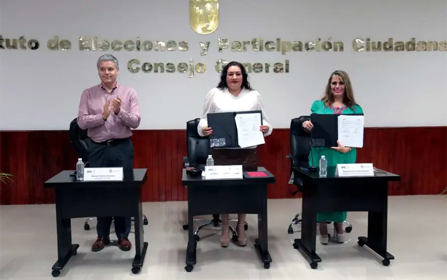 Durante la firma del Convenio, estuvieron presentes las consejeras Sofía Martínez De Castro León, Teresa de Jesús Alfonso Medina, Helena Margarita Jiménez Martínez, el consejero Edmundo Henríquez Arellano; el comisionado presidente del ITAIPCH, Jesús Pineda Carpio; el consejero presidente del Consejo de Participación Ciudadana, Ricardo Alberto Ríos Zenteno; así como Notarias y Notarios del Estado, además de personal directivo y de Contraloría del IEPC.