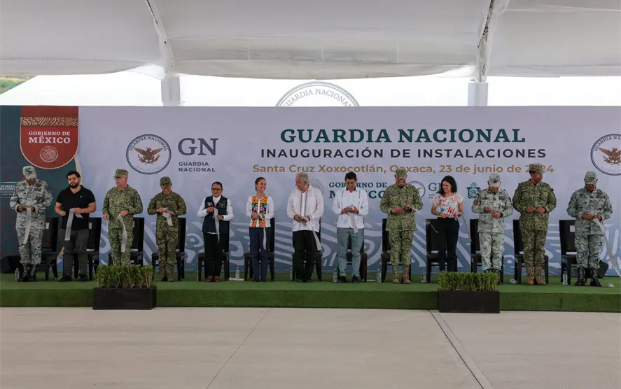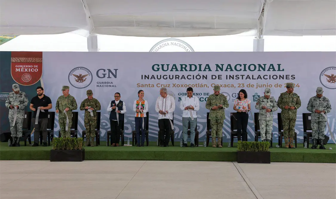 México.- Consolidar y fortalecer a la Guardia Nacional (GN) para integrarla a la estructura de la Secretaría de la Defensa Nacional (Sedena) fue el compromiso de la virtual presidenta electa de México, Claudia Sheinbaum Pardo, durante la gira conjunta con el presidente Andrés Manuel López Obrador en la que inauguraron una nueva base de esta institución en Xoxocotlán, Oaxaca.