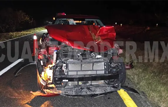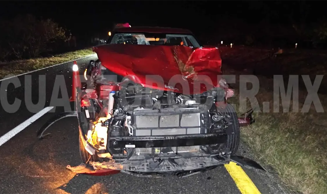 Daños materiales por varios miles de pesos tuvo un vehículo al estrellarse contra dos vacas sobre la carretera Costera, en la demarcación del municipio de Mapastepec.