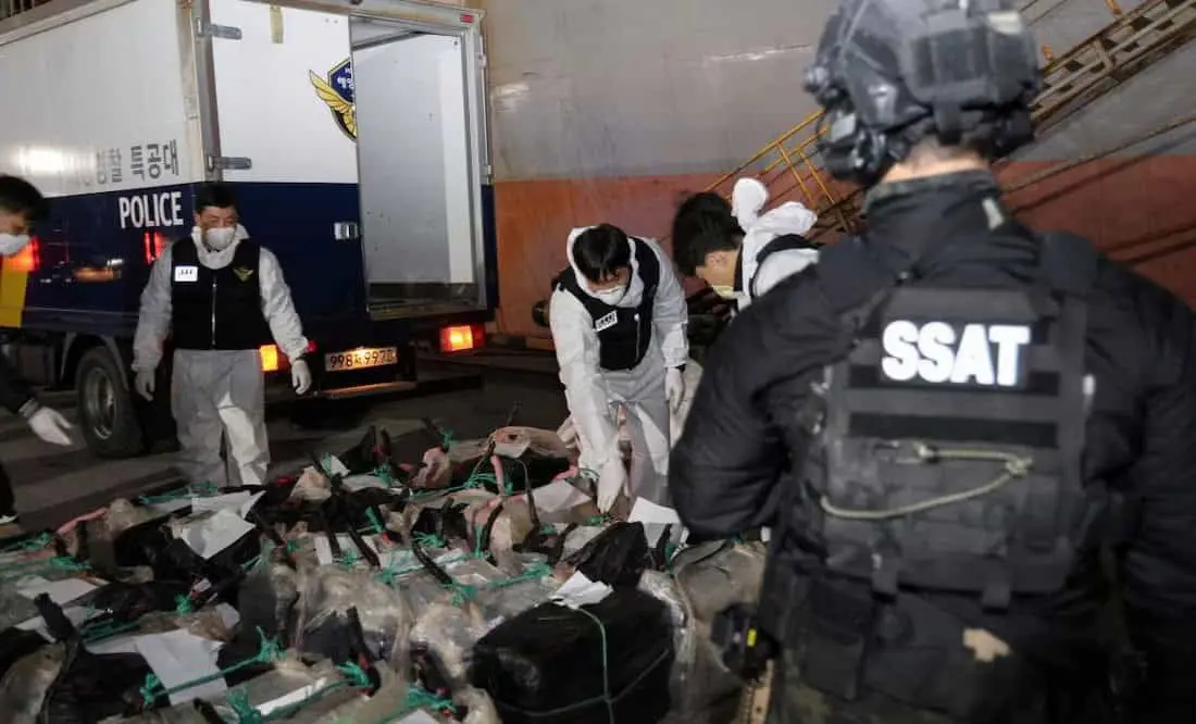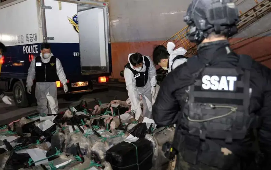 Las autoridades surcoreanas han decomisado dos toneladas de cocaína en un buque con bandera noruega que partió de México, en lo que se considera el mayor cargamento de droga incautado en la historia del país. La operación fue llevada a cabo gracias a la cooperación con agencias estadounidenses, como el FBI y la Oficina de Investigaciones de Seguridad Nacional. Tras recibir información sobre el transporte de narcóticos, la guardia costera y el servicio de aduanas surcoreanos realizaron una búsqueda en la embarcación, que realizó escalas en Ecuador, Panamá y China antes de llegar a Corea del Sur.