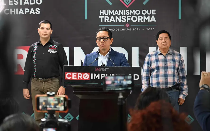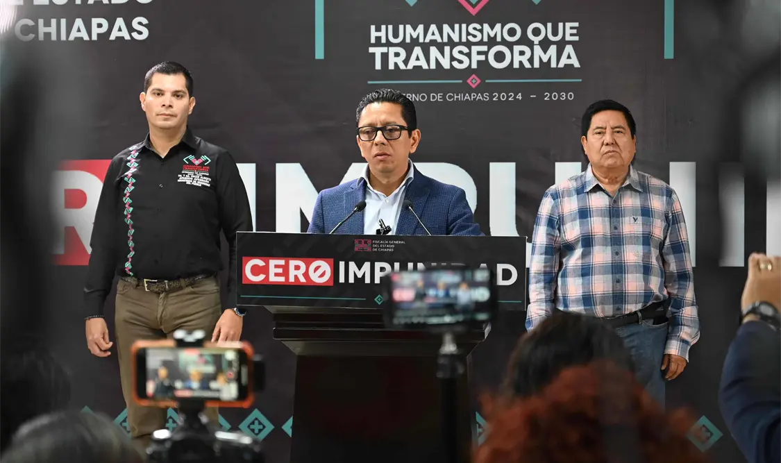 En conferencia de prensa, el Fiscal General del Estado, Jorge Luis Llaven Abarca y el Secretario de Seguridad del Pueblo, Óscar Alberto Aparicio Avendaño, informaron sobre las acciones que se han realizado en los últimos días para garantizar la seguridad y el estado de derecho en Chiapas.