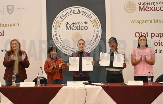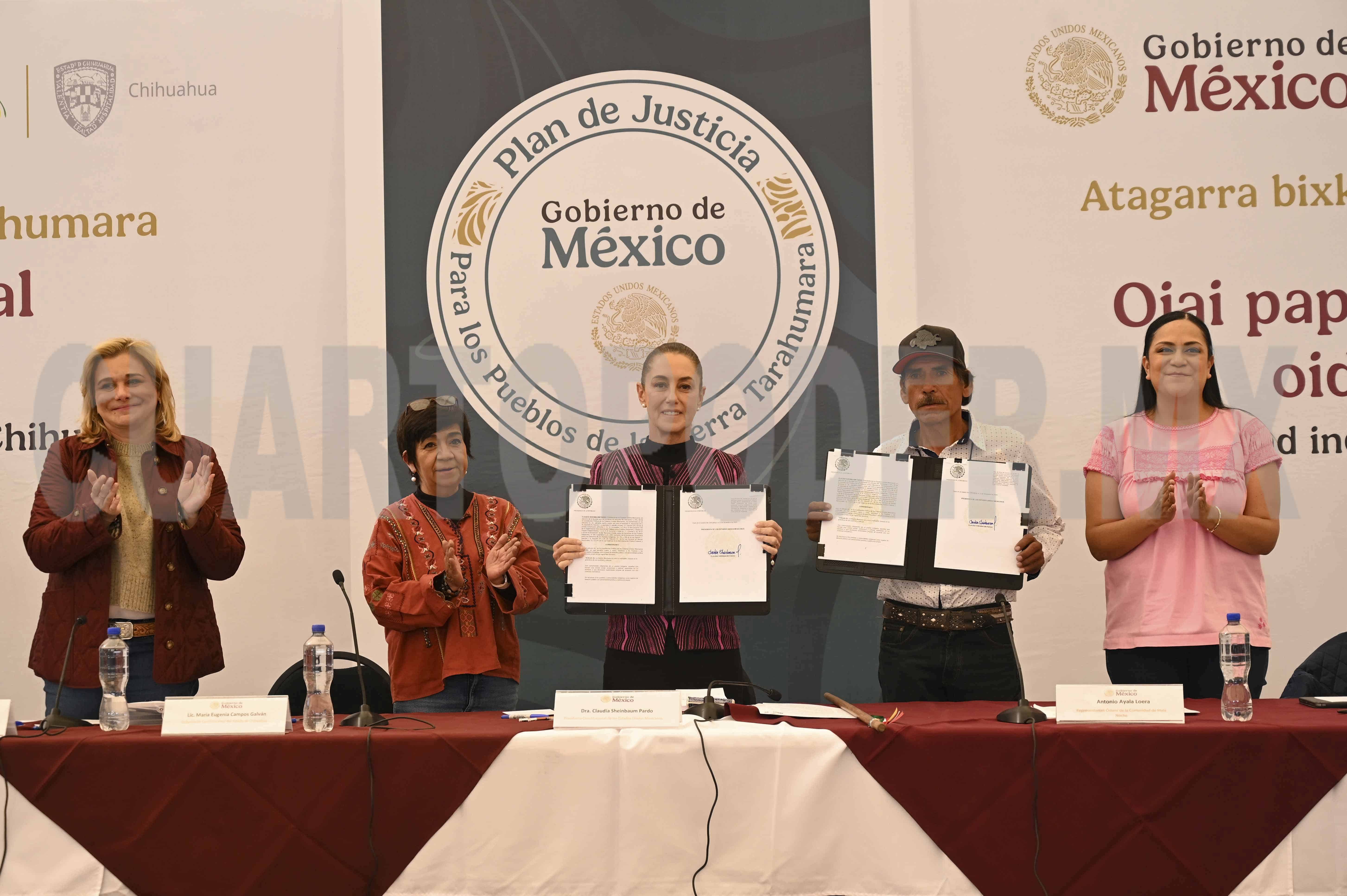 Como parte del Plan de Justicia de los Pueblos de la Sierra Tarahumara en Chihuahua, la presidenta Claudia Sheinbaum Pardo encabezó la entrega de más de 3 mil hectáreas para el pueblo ódami, que fue despojado de sus tierras y que hoy reciben justicia territorial en el Segundo Piso de la Cuarta Transformación.