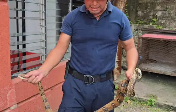 Dos serpientes que en los últimos días fueron capturadas en el interior de dos domicilios diferentes en Tapachula, fueron liberadas en su hábitat natural. El comandante del Cuerpo de Bomberos, Daniel Almaraz, explicó que se trata de boas constrictor, conocidas en la zona como “mazacuatas”, que si bien no son peligrosas, pueden morder a las personas. Durante la temporada de lluvias ese topo de serpientes se refugian en patios baldíos y en el interior de las casas, pero se recomienda a la población que no intenten asegurarlas, sino que pidan apoyo a personas capacitadas como son los bomberos, para que las capturen. En este caso, las dos boas fueron liberadas en una zona segura para las mismas.