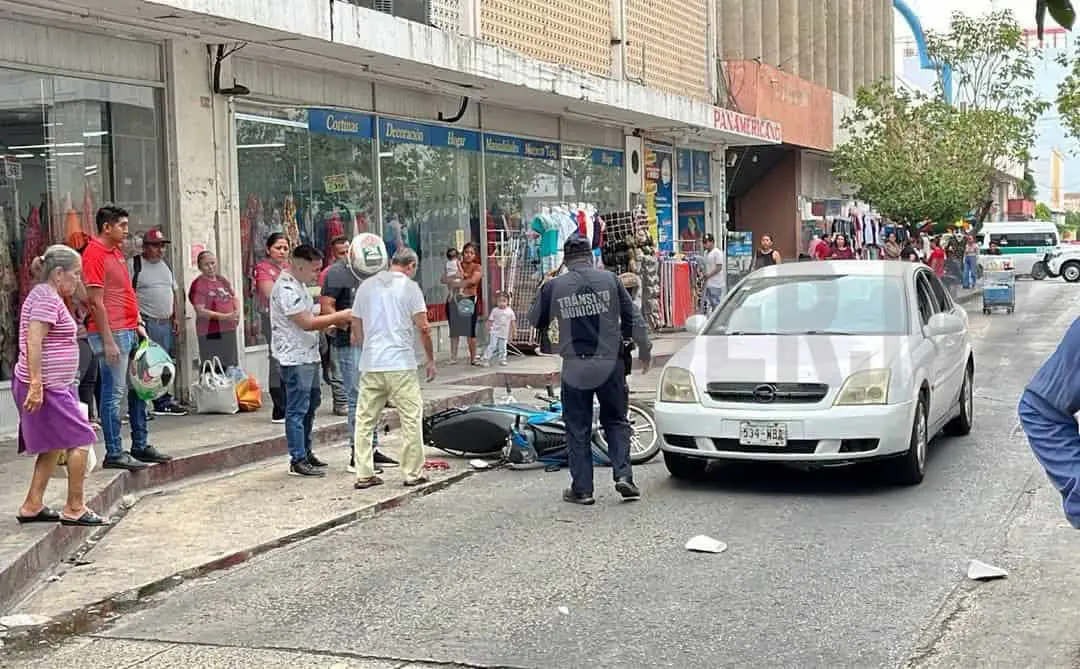 Una colisión entre un motociclista y un automovilista dejó como saldo únicamente daños materiales, esto fue en el primer cuadro de la capital Tuxtla Gutiérrez, durante el mediodía del viernes.