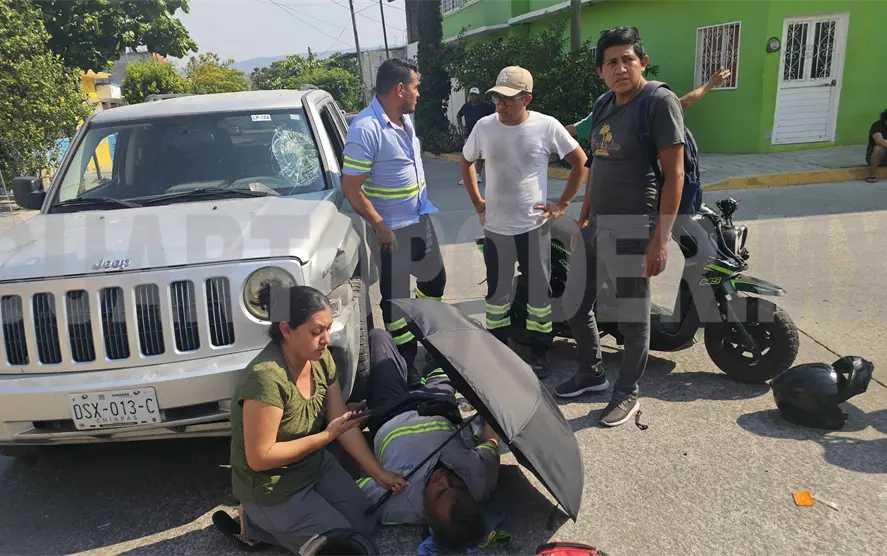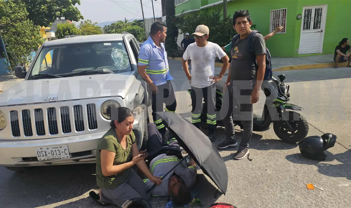 En la colonia Adonahí, localizada en la capital Tuxtla Gutiérrez, un motociclista resultó policontundido de las extremidades tras ser embestido por un vehículo particular, la tarde del lunes.