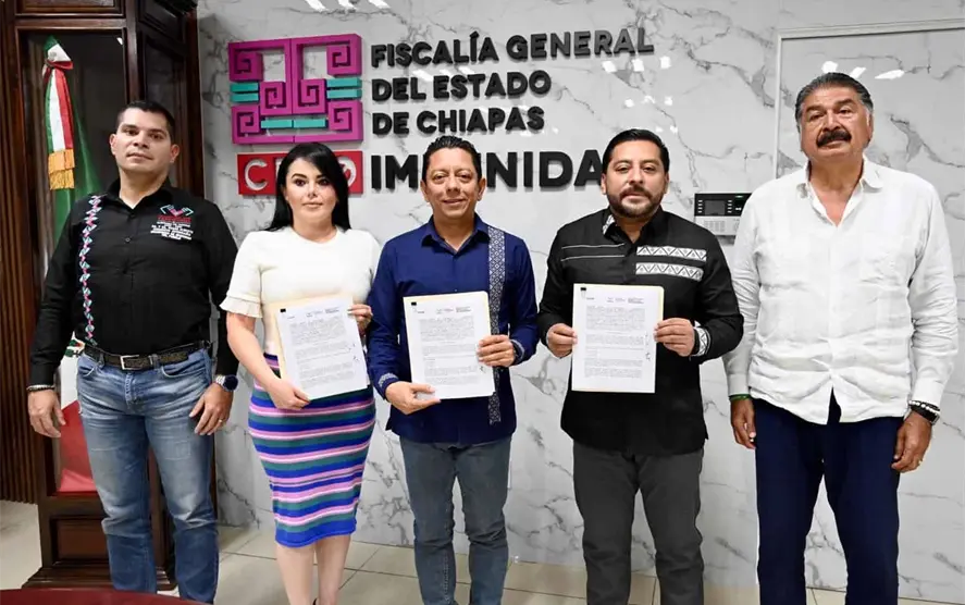 Tras la firma, a la que también asistió el Jefe de Unidad de Inteligencia Patrimonial y Económica de la Secretaría de Finanzas, Esdras Cruz y Cruz, el Fiscal General expresó que con esta suma de esfuerzos, las autoridades vamos contra los delincuentes de cuello blanco que tanto daño le han hecho a Chiapas, pues en la Nueva ERA, todos los delitos serán tratados con Cero Impunidad y Cero Corrupción.
