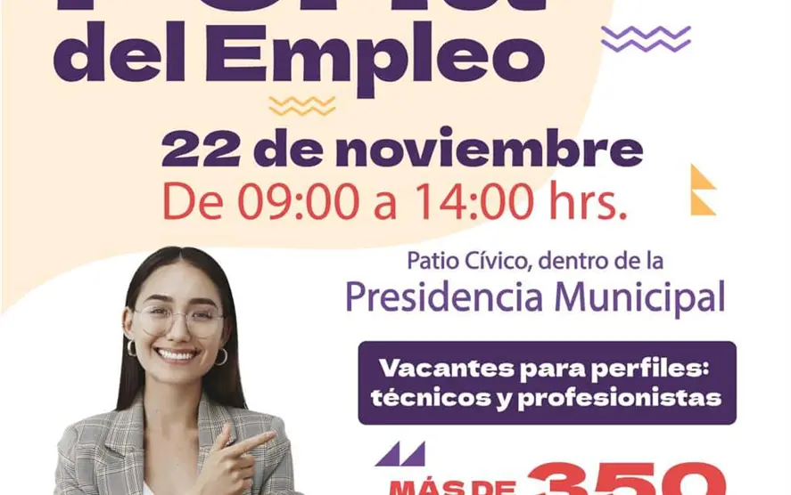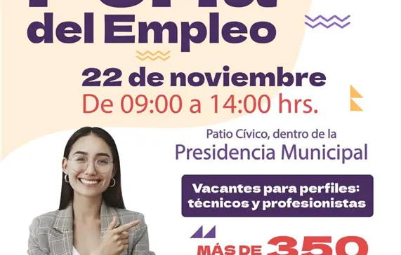 Con la participación de más de 20 empresas de renombre y más de 350 ofertas de trabajo se realizará la 1ª Feria de Empleo en Tuxtla Gutiérrez, el próximo viernes 22 de noviembre, de 9 de la mañana a 2 de la tarde, en el patio del Ayuntamiento capitalino.