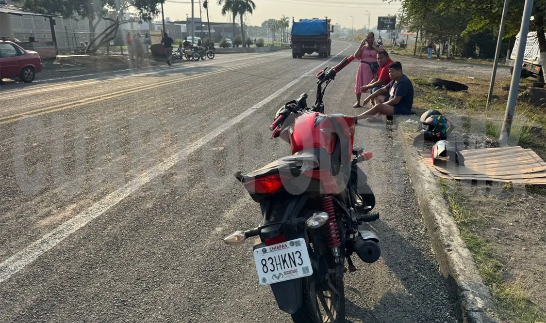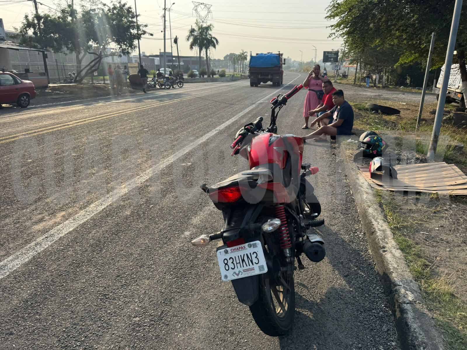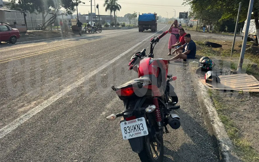 Un inusual choque entre una motocicleta y una bicicleta se registró sobre el libramiento Sur del municipio de Tapachula, dejando a dos personas lesionadas que requirieron de atención médica.