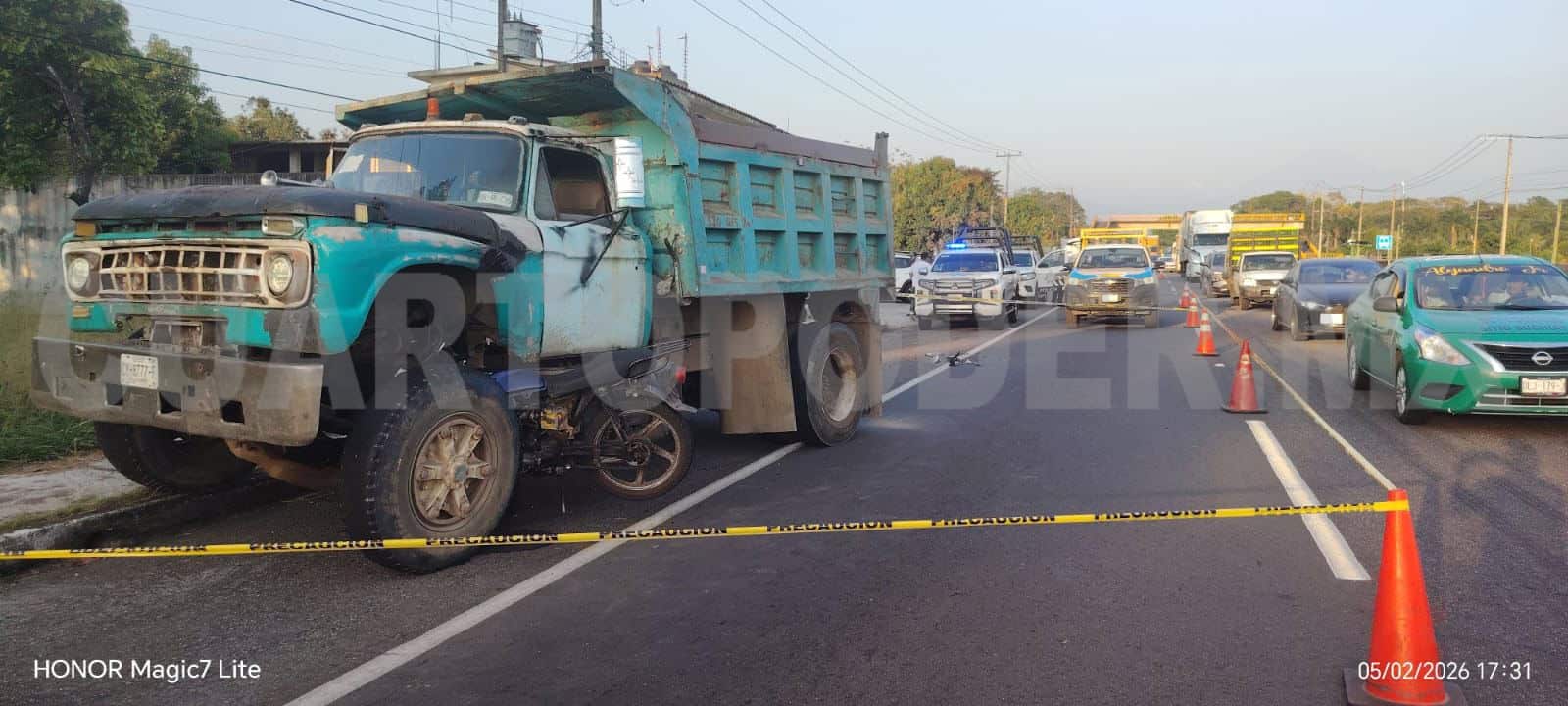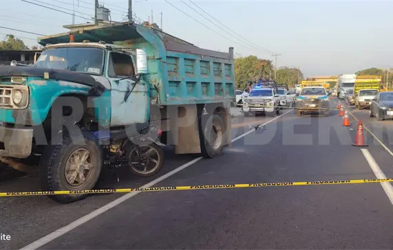 La falta de precaución del conductor de un camión de volteo al realizar maniobras sobre la carretera, provocó un accidente en el que un motociclista resultó lesionado y fue trasladado de emergencia al hospital regional de Tapachula.