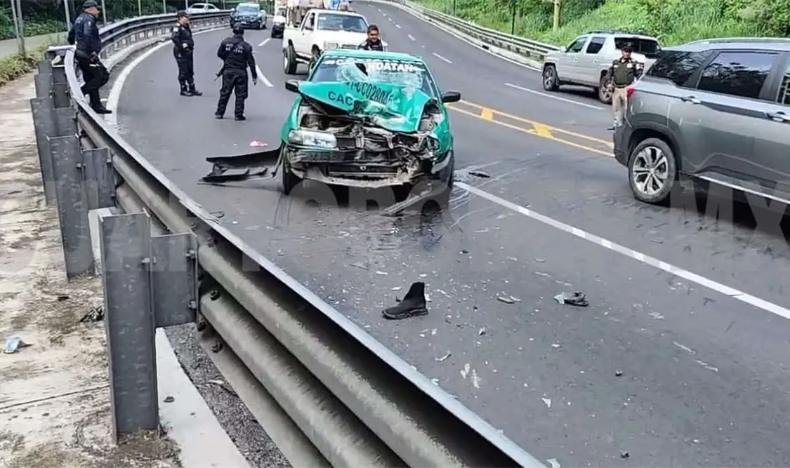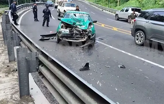Dos personas que se desplazaban en una motocicleta resultaron lesionadas al impactar de frente contra un taxi, en el tramo carretero Tapachula-Tuxtla Chico, en la demarcación tapachulteca, dejando también daños materiales por varias decenas de miles de pesos.