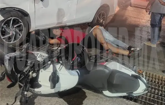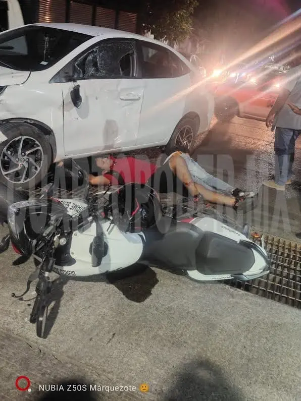 Dos personas que se desplazaban en una motocicleta resultaron lesionados, una de los cuales tuvo que ser hospitalizada, al ser impactadas por un vehículo en la 7ª. avenida Sur y 12ª. calle Oriente de Tapachula.