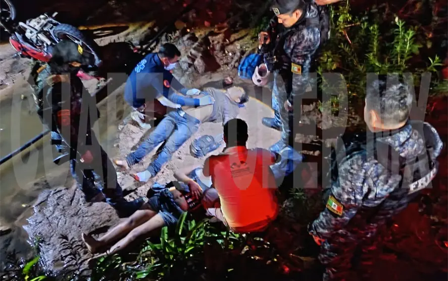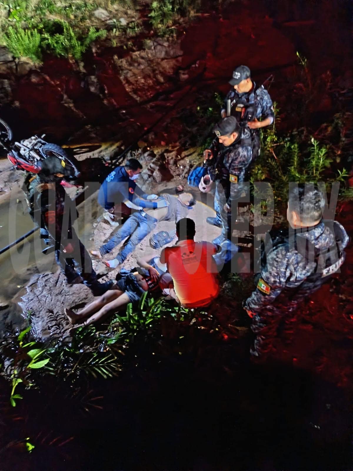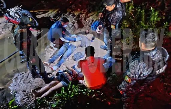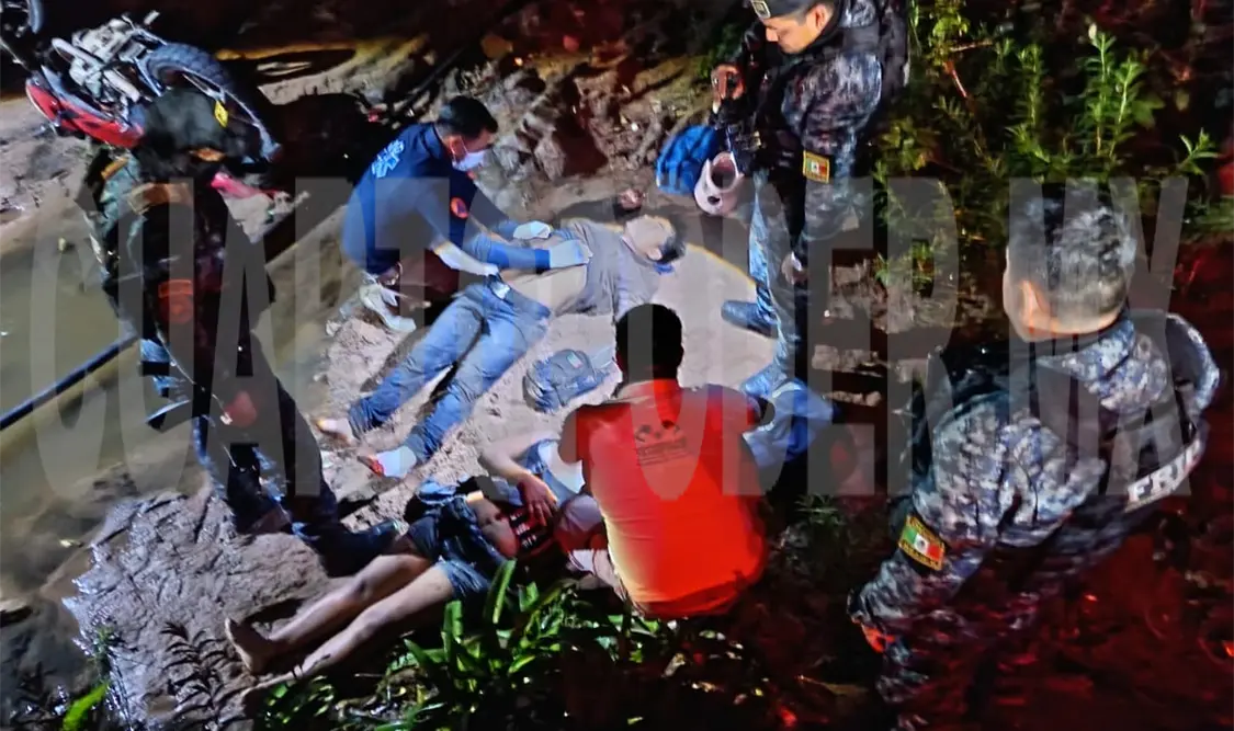 Dos personas resultaron lesionadas tras un accidente registrado en el tramo carretero que conecta la cabecera municipal de Cintalapa con la colonia Agrícola Ganadera Emiliano Zapata, durante la madrugada del martes, donde la motocicleta en la que viajaban salió del camino y cayó a un arroyo.