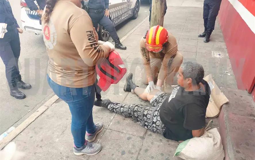 Una mujer en situación de calle fue atropellada en el centro de Tapachula, y tras ser auxiliada por paramédicos de Protección Civil tuvo que ser trasladada al hospital regional.
