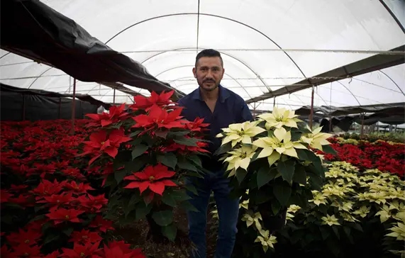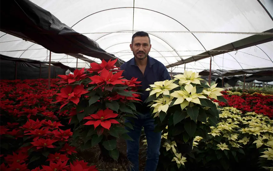 México.- El amor por las flores y las enseñanzas heredadas salvaron un año más la producción de nochebuenas de los embates del cambio climático, señala Ulises Díaz, productor de la planta que, meticulosamente, cuidó como a su propia familia en una cosecha de más de 25 mil matas de diferentes variedades que adornarán los hogares mexicanos en diciembre.