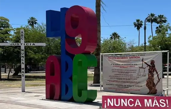 Hermosillo.- A casi 15 años del incendio de la Guardería ABC en Hermosillo, tras la colocación de un antimonumento que representa la impunidad por la muerte de 49 niñas y niños, padres y madres de los menores fallecidos exigen una audiencia con el presidente Andrés Manuel Lopez Obrador.