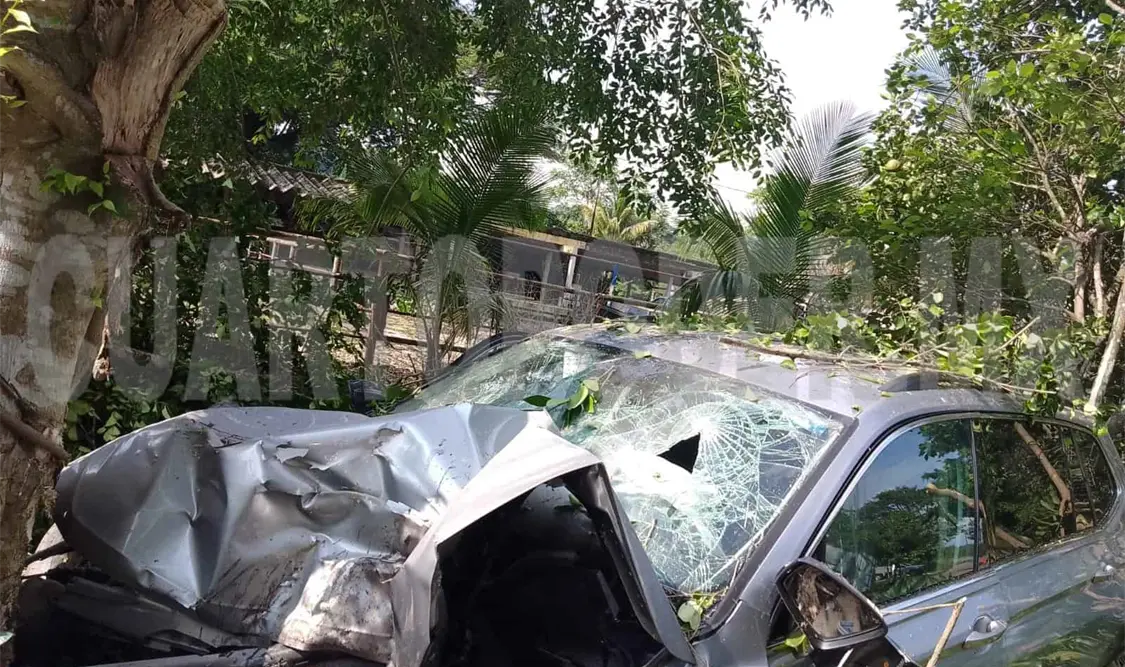 Cuatro personas resultaron lesionadas cuando la camioneta en la que viajaban perdió el control, saliendo de la carretera a la altura de la comunidad de Vista Alegre en el tramo Juárez-Pichucalco.