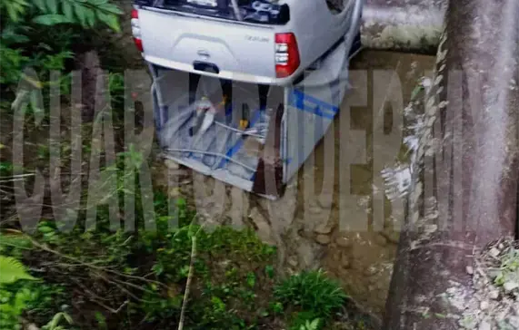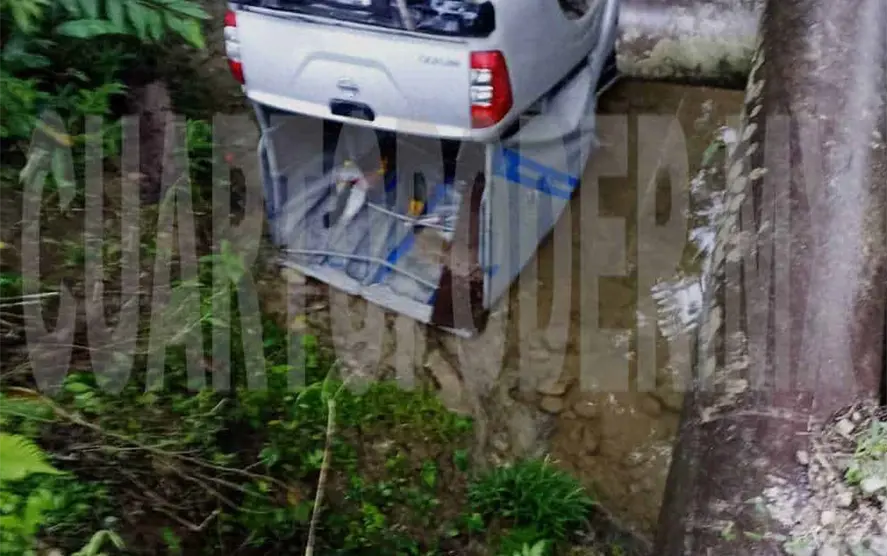 SALTO DE AGUA. Daños materiales en una camioneta fueron el saldo de un accidente durante la mañana del viernes en el municipio de Salto de Agua. El conductor perdió el control del volante presuntamente por una mala maniobra y lo mojado del puente vehicular, ante las lluvias que han estado cayendo en las últimas horas en la zona.