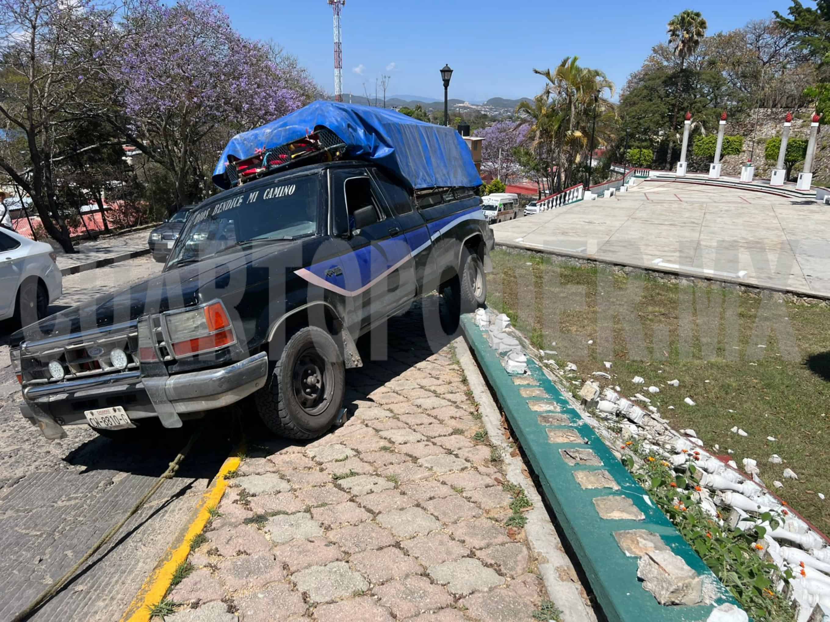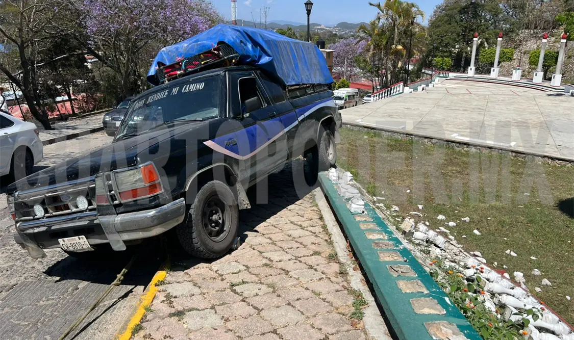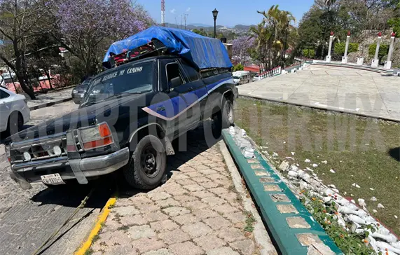 Con daños materiales se saldó un accidente vial durante la tarde del jueves al suroriente del municipio de Comitán, el cual sucedió cuando el conductor de una camioneta perdió el control al sufrir una falla en los frenos y retrocedió sin control hasta colisionar contra el barandal de un monumento.