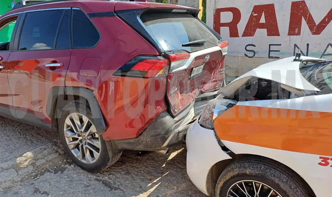 Con daños materiales se saldó un choque que se registró durante la mañana del viernes en el municipio de Comitán, cuando un taxista no logró frenar a tiempo y colisionó por alcance a una camioneta que disminuyó la velocidad al pasar un tope.