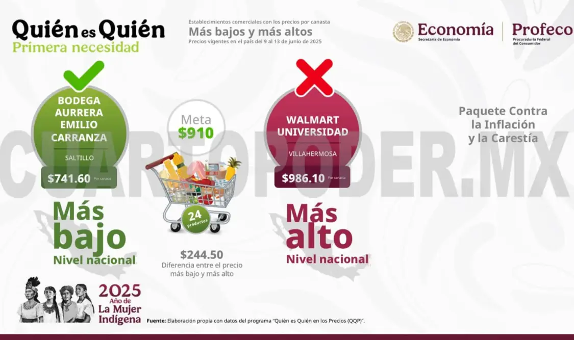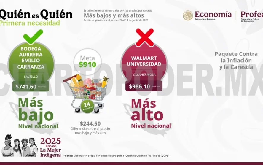 En cuanto a la canasta básica, Profeco informó que los precios siguen por debajo del techo establecido de 910 pesos gracias al Paquete Contra la Inflación y Carestía (PACIC). Sin embargo, persisten variaciones regionales notables: mientras en un supermercado el costo puede rondar los 708 pesos, en otra tienda podría alcanzar prácticamente los 1 000 pesos, mostrando diferencias de casi 300 pesos. Estas cifras resaltan la importancia de comparar precios y aprovechar herramientas como el mapa virtual de Profeco para economizar.