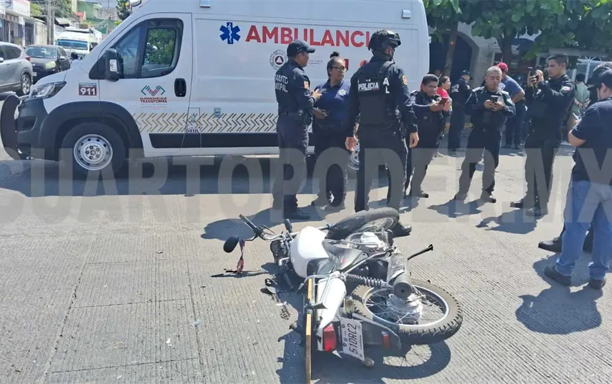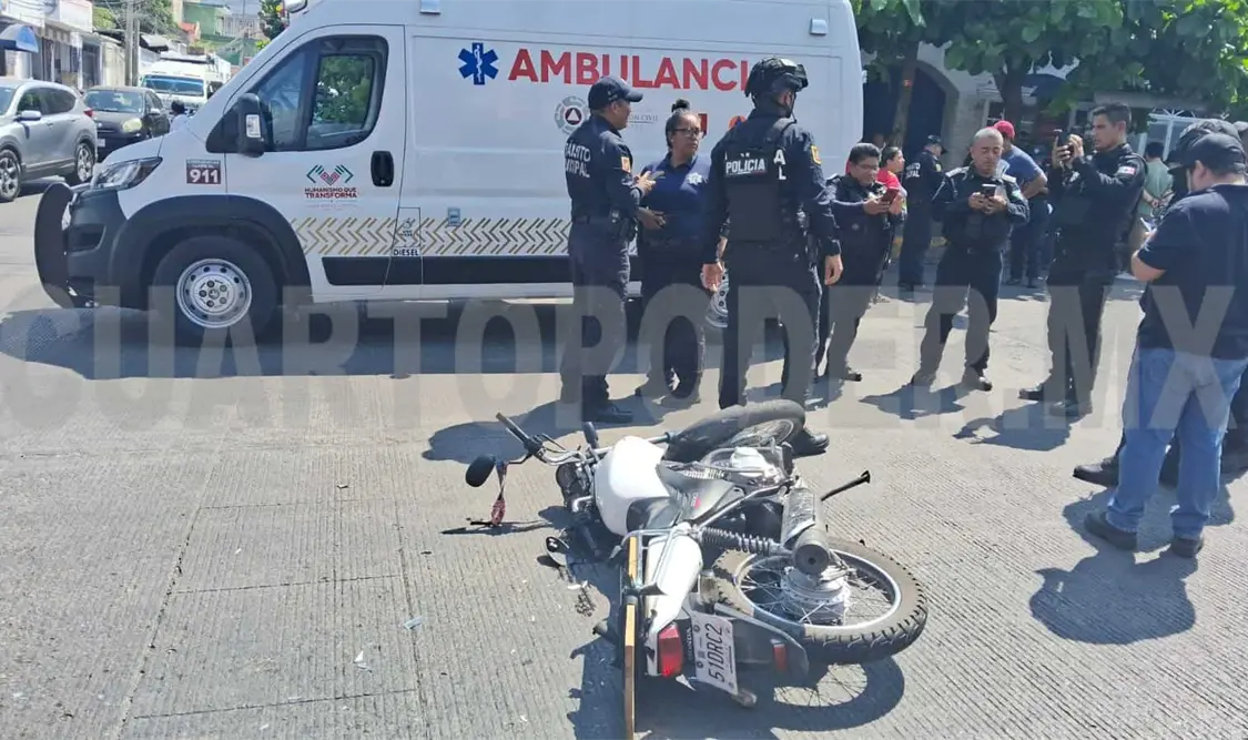 Con una pierna fracturada expuesta terminó una mujer luego de ser atropellada por un motociclista en la 9.ª Sur y 4.ª Poniente del barrio San Francisco, en la ciudad de Tuxtla Gutiérrez, luego del mediodía del viernes.