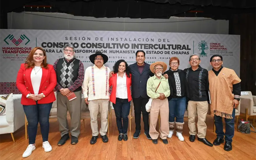El gobernador Eduardo Ramírez Aguilar presidió la sesión de instalación del Consejo Consultivo Intercultural para la Transformación Humanista del Estado de Chiapas, un órgano colegiado de consulta que tiene como objetivo presentar propuestas y recomendaciones para la toma de decisiones en áreas como educación, cultura, lenguas, salud y desarrollo social.