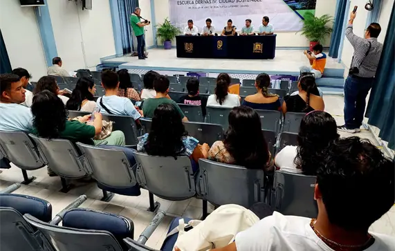 El auditorio de la Facultad de Contaduría y Administración, Campus l de la Universidad Autónoma de Chiapas, fue sede de la ceremonia de bienvenida del Curso-Taller “Ciudad Sostenible", organizado por la Escuela Internacional Derivas lV, a la que pertenece la UNACH.
