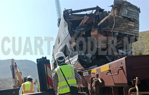 Trabajadores del Ferrocarril del Istmo de Tehuantepec (FIT) continúan retirando en pedazos el vagón que descarriló y cayó al barranco el pasado domingo 28 de diciembre, en las inmediaciones del poblado Nizanda, que pertenece a Asunción Ixtaltepec.
