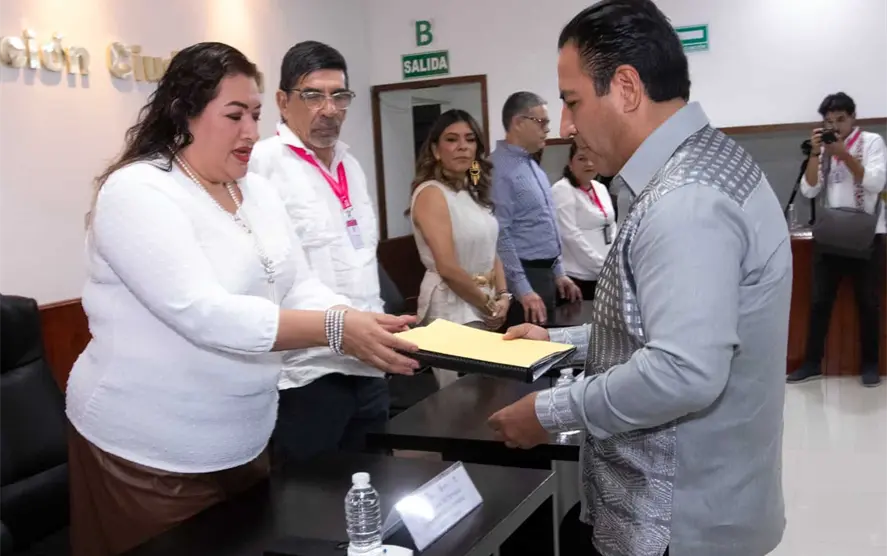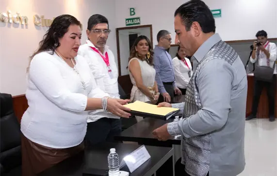 En el Instituto de Elecciones y Participación Ciudadana (IEPC) de Chiapas, este domingo 17 de marzo, las integrantes del Consejo General, María Magdalena Vila Domínguez, presidenta provisional, la consejera Sofía Martínez De Castro León, el consejero Edmundo Henríquez Arellano y las consejeras Teresa de Jesús Alfonso Medina, Helena Margarita Jiménez Martínez y Gloria Esther Mendoza Ledesma, así como el secretario ejecutivo, Manuel Jiménez Dorantes y la directora ejecutiva de Asociaciones Política, Andrea del Rosario Méndez Zamora, recibieron la solicitud del registro de candidatura a la Gubernatura del Estado de la Coalición “Sigamos Haciendo Historia en Chiapas”.