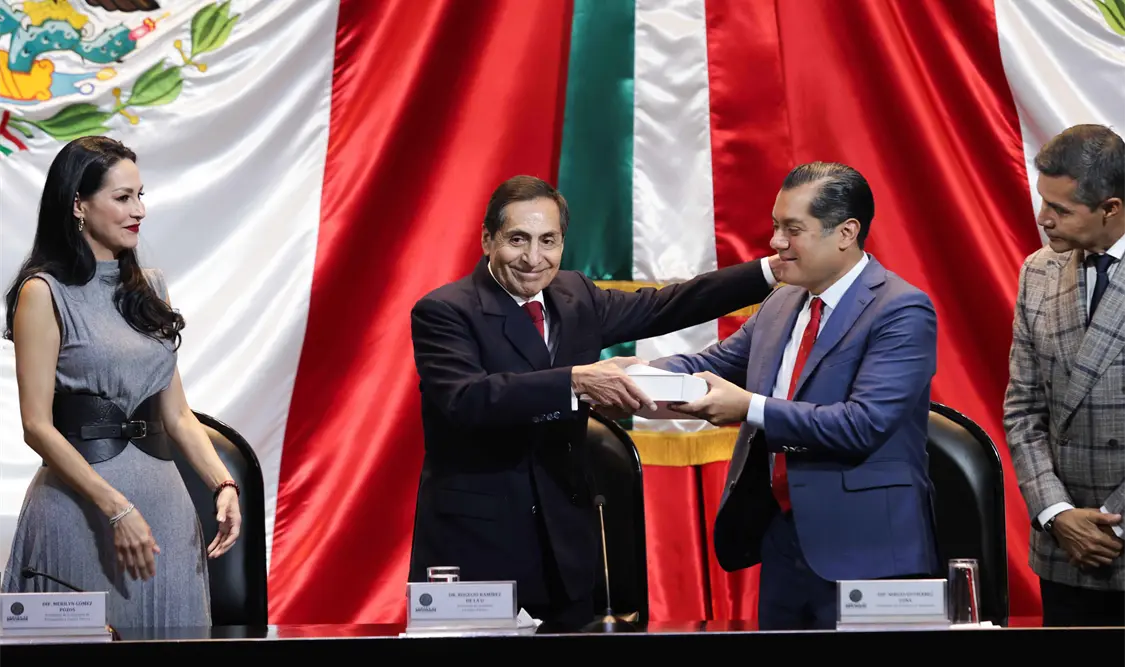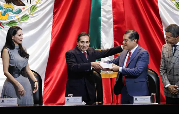 México.- El Secretario de Hacienda y Crédito Público, Rogelio Ramírez de la O, entregó el Paquete Económico 2025 al presidente de la Mesa Directiva, Sergio Gutiérrez.