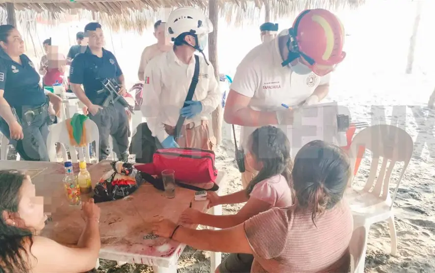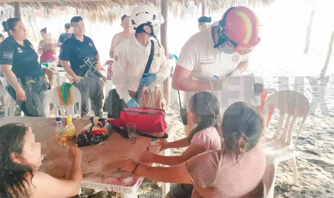 Personas que se encontraban en la playa de San Benito en Puerto Madero, Tapachula, rescataron a una mujer que se estaba ahogando en el mar, la cual fue auxiliada por paramédicos de Protección Civil.