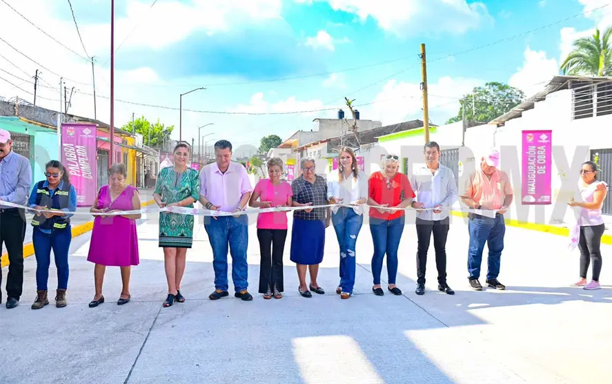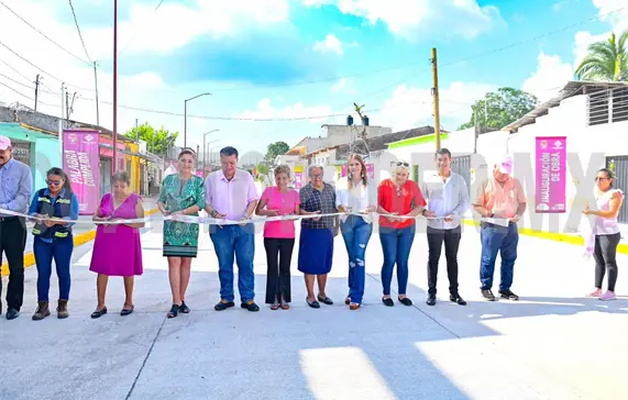 Al inaugurar la pavimentación integral de calles en 20 calle Oriente entre 13 avenida Sur y 19 avenida Sur de la colonia Calcáneo Beltrán de esta ciudad, la presidenta municipal de Tapachula, Rosa Irene Urbina Castañeda refrendó el compromiso de los Gobiernos de la Cuarta Transformación de seguir avanzando con la entrega de obras que beneficien a las familias tapachultecas.