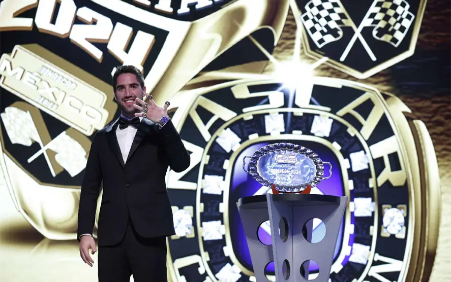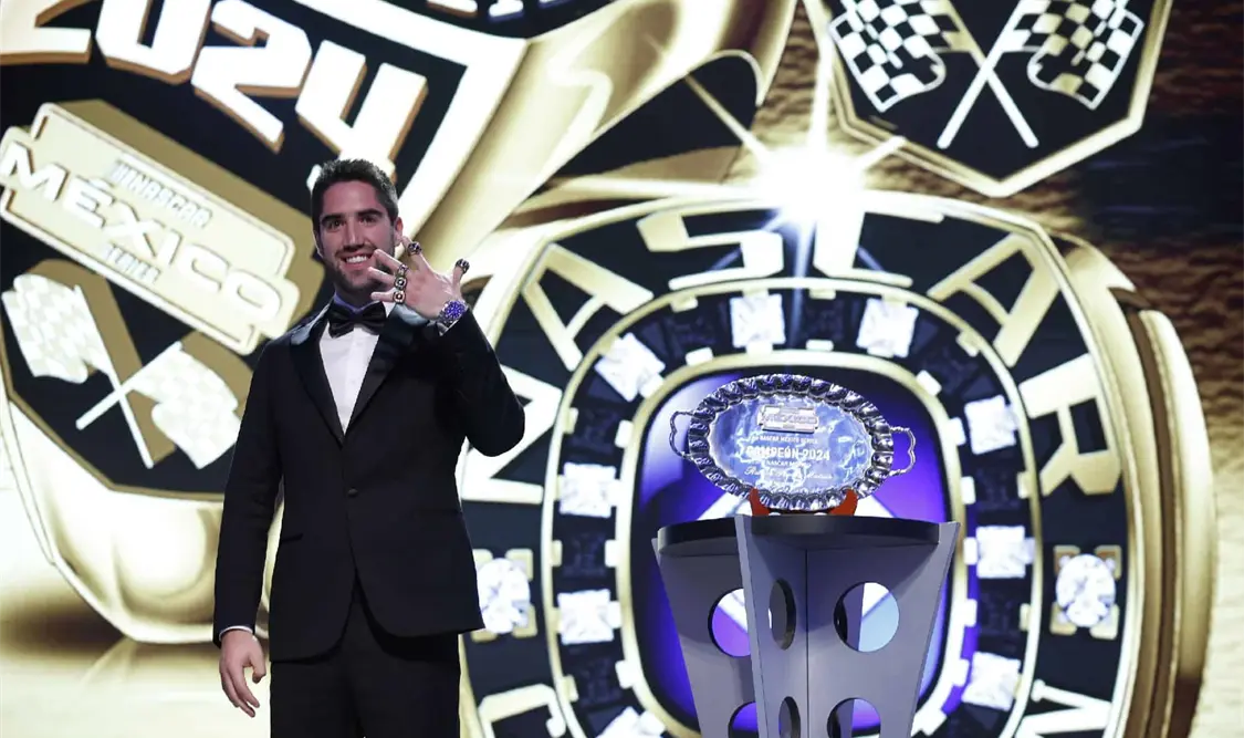 En una ceremonia efectuado en Charlotte, Carolina del Norte, Chad Seigler, vicepresidente internacional de Nascar, hizo entrega a Rubén García Jr. del anillo que lo acredita como campeón de Nascar México Series 2024.