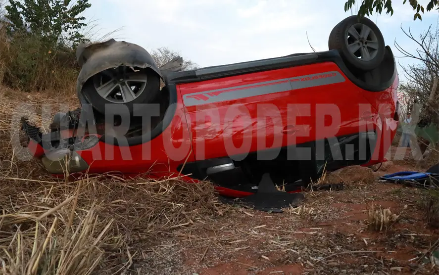 Un vehículo terminó llantas arriba y con el conductor lesionado al abandonar la carretera en una de las vías de comunicación del municipio de Jiquipilas, la tarde del domingo. Aunque no hay una versión oficial, presuntamente una falla mecánica fue la causa.