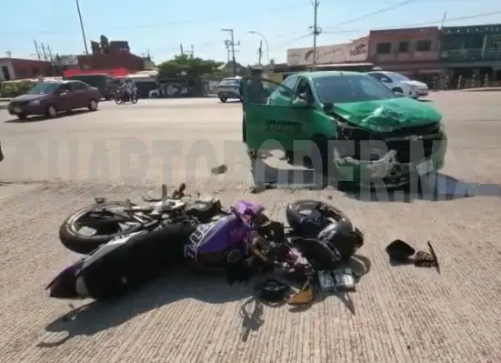 Un joven resultó gravemente lesionado luego de un brutal impacto contra un taxi de ruta foránea en el crucero del libramiento Sur y la carretera hacia el ejido Raymundo Enríquez, al sur de Tapachula.