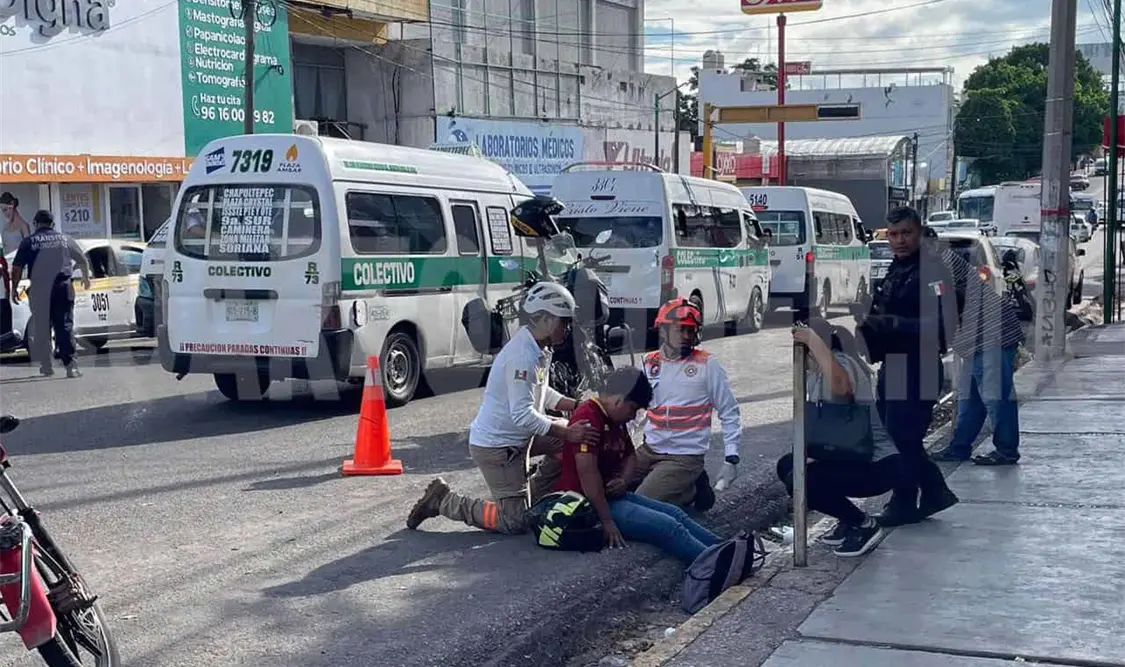 TUXTLA GUTIÉRREZ. Un motociclista sufrió sobre la 9.ª Sur y 2.ª Oriente de la zona centro, un aparatoso accidente que lo dejó lesionado.