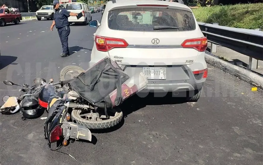 Con lesiones en diversas partes del cuerpo resultó un motociclista dedicado a la entrega de productos, al impactarse contra la parte trasera de un vehículo en el tramo carretero que va de Talismán a Tapachula, en la demarcación tapachulteca.