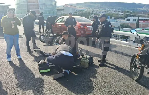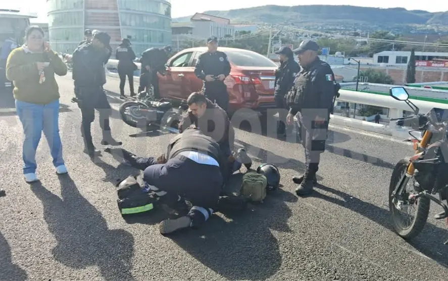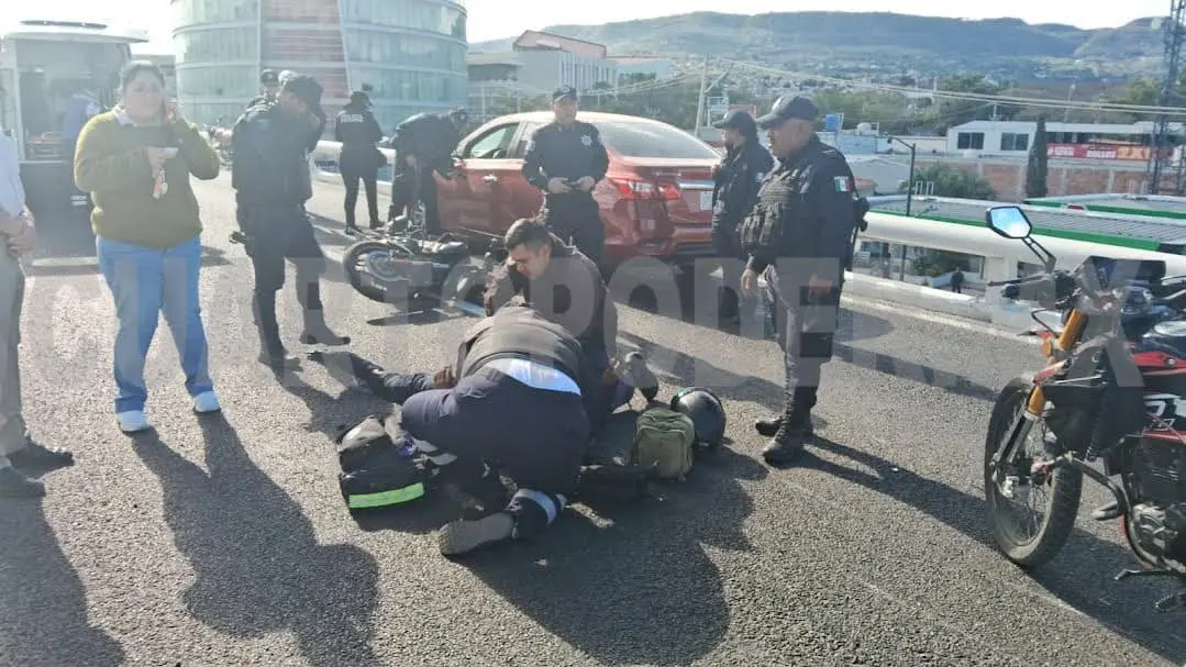 Un policía estatal terminó con múltiples lesiones en sus extremidades luego de estrellarse contra un automóvil sobre el puente elevado del libramiento Norte, a la altura de la Torre Chiapas.