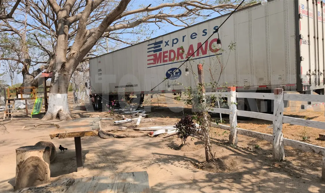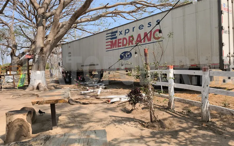 En el municipio de Tonalá se registró un aparatoso incidente vial donde estuvo implicado un tráiler, mismo que, con todo y remolque, se introdujo al terreno del restaurante El asador el Alazán.
