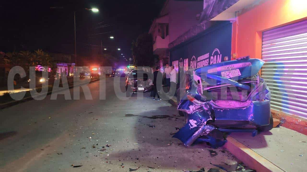Un joven que manejando un vehículo a exceso de velocidad se impactó contra otras dos unidades que se encontraban estacionadas, resultó lesionado y los daños materiales son por varias decenas de miles de pesos. Los hechos ocurrieron en la 18ª. calle Oriente entre 15ª. y 17ª. avenida Sur, en la colonia 16 de Septiembre, al sur-oriente de Tapachula.
