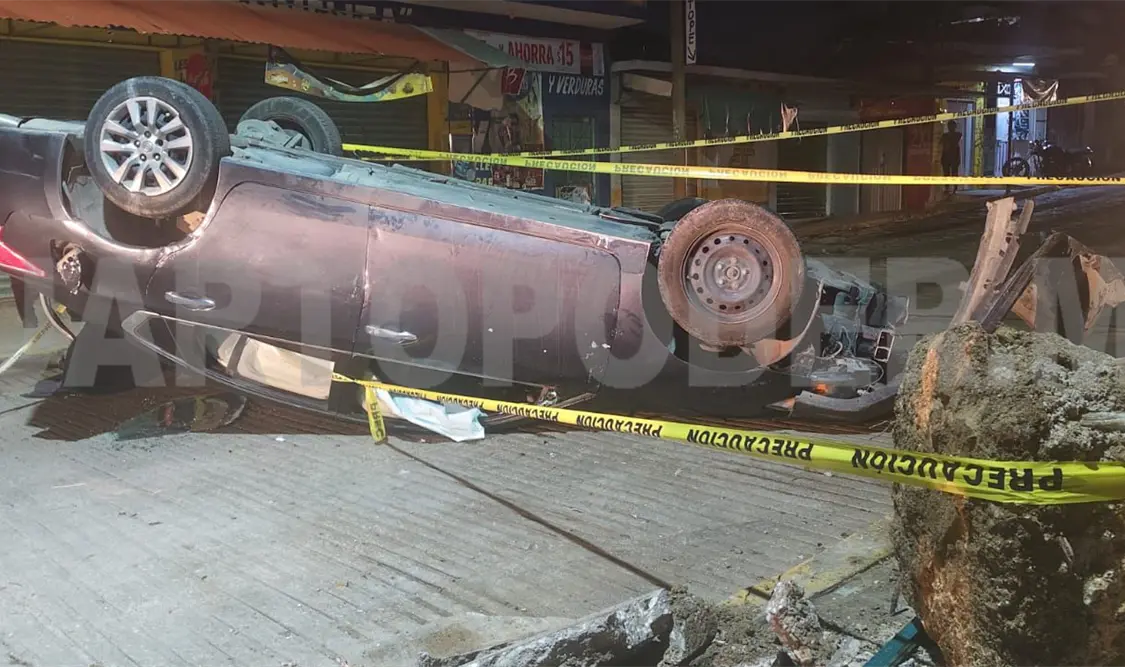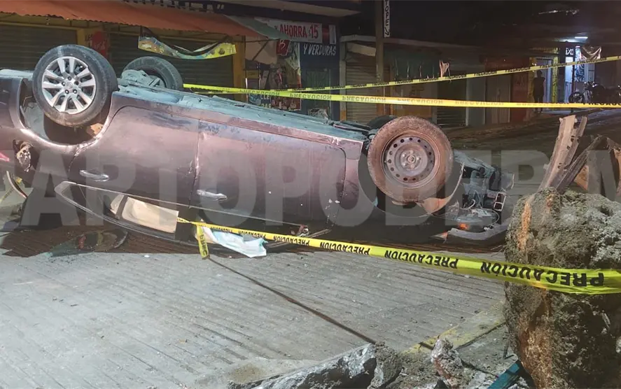 Tres lesionados, entre ellos dos menores, fue lo que dejó como saldo una aparatosa volcadura sucedida en la colonia Las Granjas de la capital Tuxtla Gutiérrez, durante la medianoche del jueves.