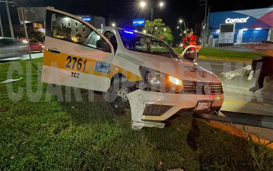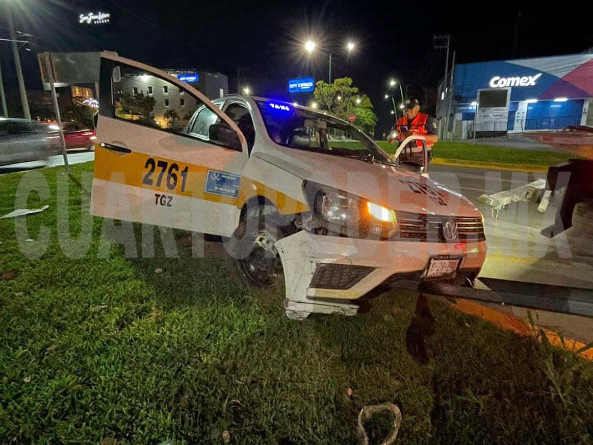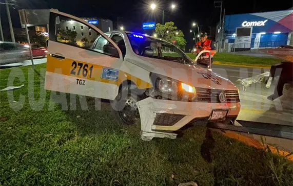 Un transporte público en modalidad de taxi terminó sobre las jardineras del andén central del libramiento Sur, a la altura de la tienda comercial Home Depot en Tuxtla Gutiérrez.