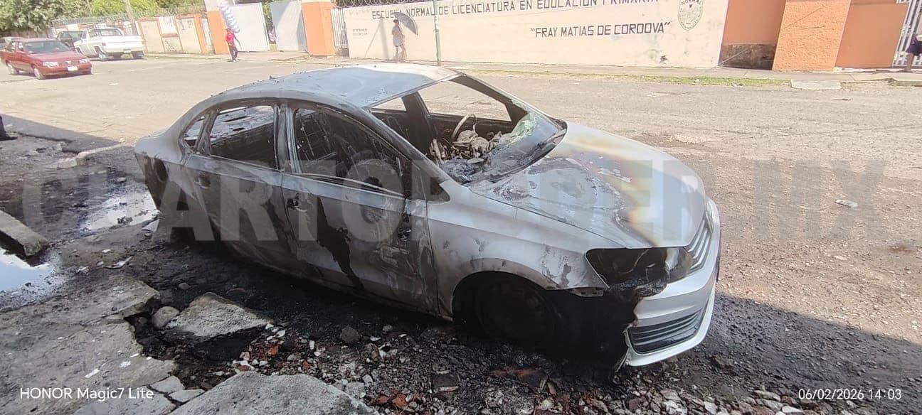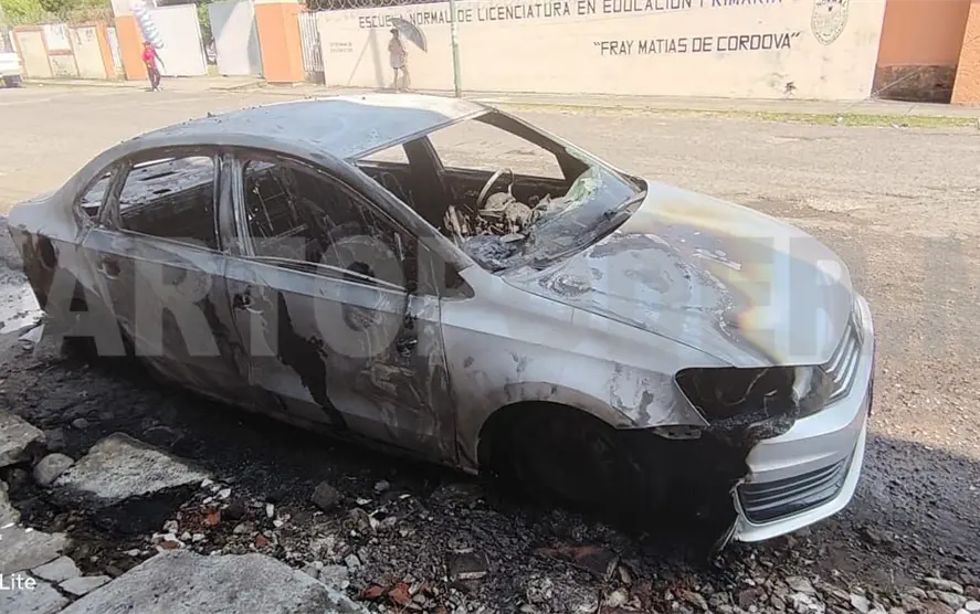 Daños materiales de alta consideración fue lo que tuvo un vehículo al incendiarse, presuntamente a causa de un cortocircuito, esto en el municipio de Tapachula.