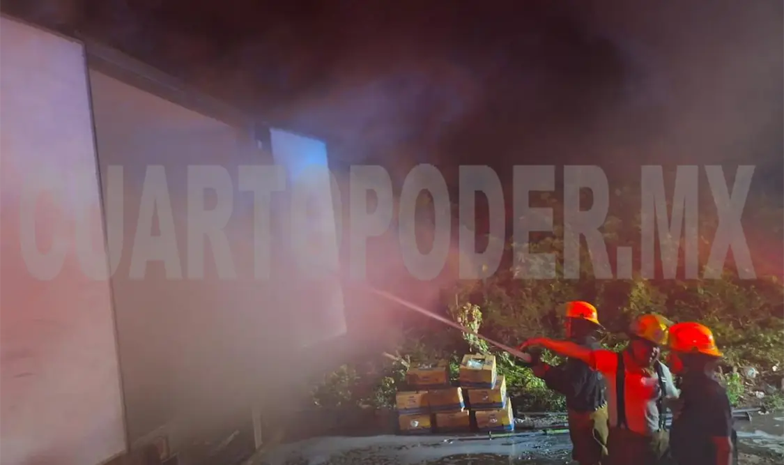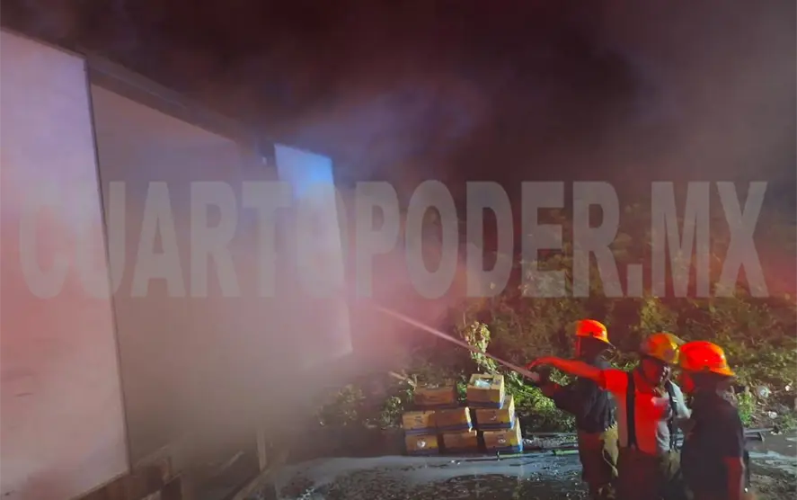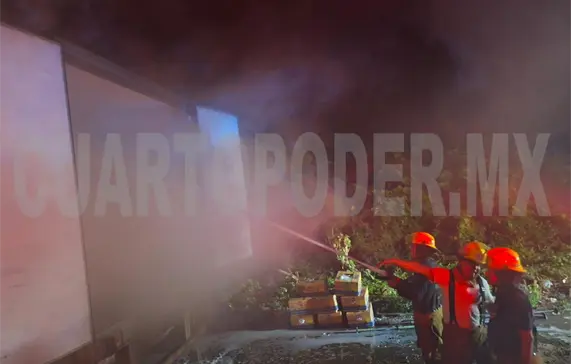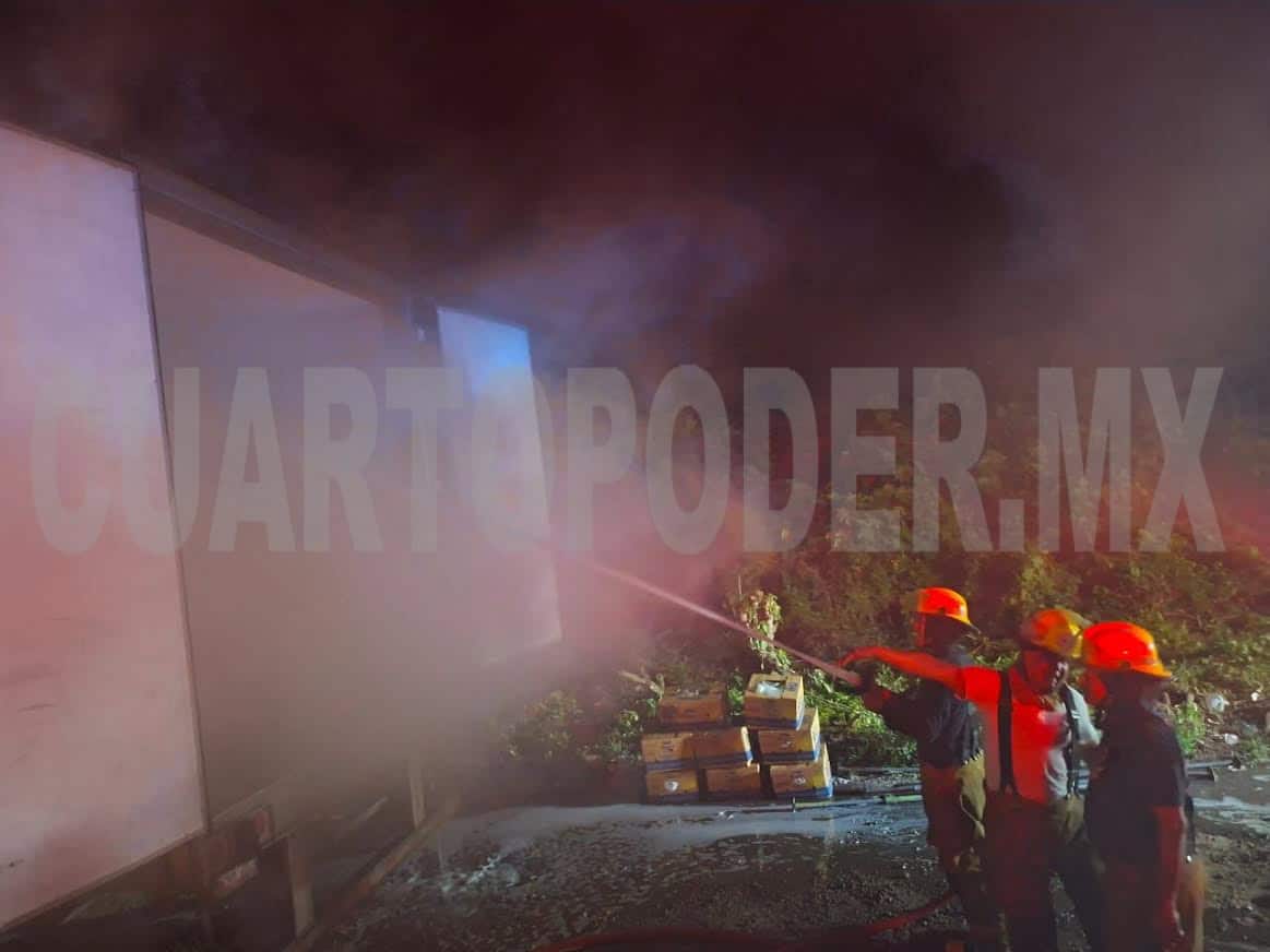 Elementos del Cuerpo de Bomberos de Tapachula apagaron un incendio de la caja de un tráiler que iba cargado de banano, sobre la carretera Tapachula-Puerto Madero.