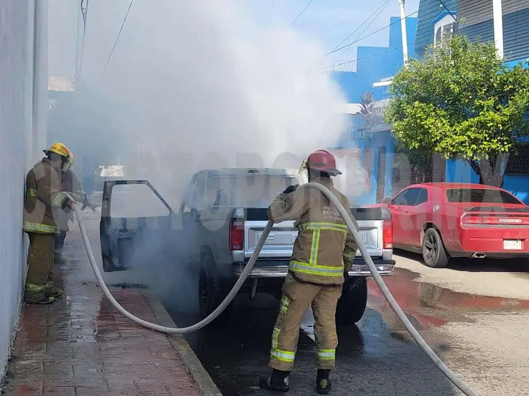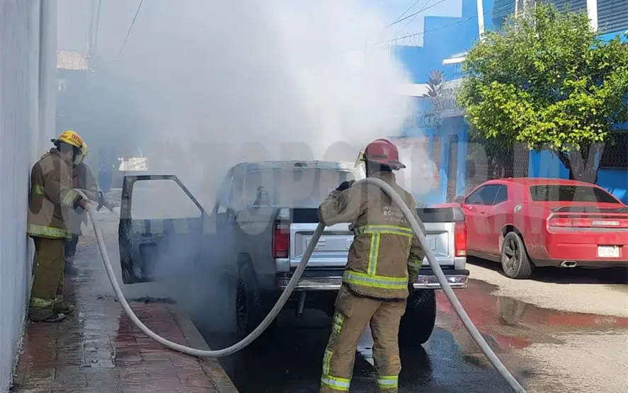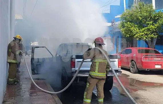 Un cortocircuito en la parte del motor, presuntamente fue la causa del incendio de una camioneta, en la 2ª. calle Poniente y 16ª. avenida Sur, en la colonia San Caralampio de Tapachula.