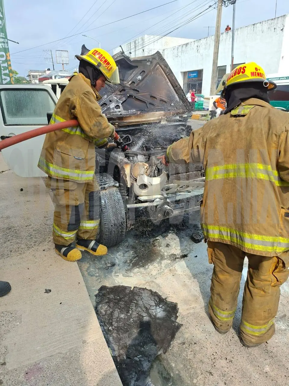 Un presunto cortocircuito en la zona del motor fue la causa del incendio de un vehículo en el centro de la ciudad de Tapachula.