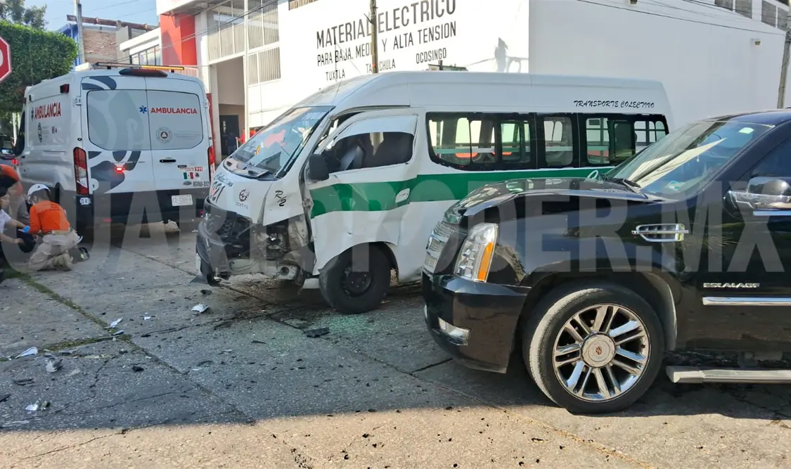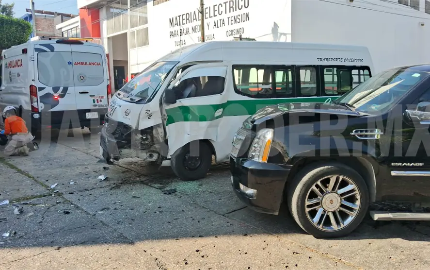 Tres personas resultaron lesionadas durante un aparatoso accidente de tránsito sucedido sobre la 1.ª Oriente y 21.ª Sur del barrio San Francisco, en la capital Tuxtla Gutiérrez, el viernes por la mañana.