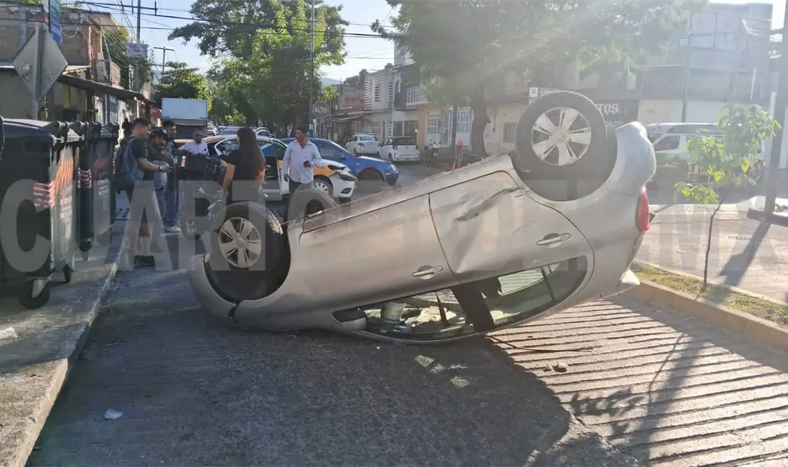 Dos personas malheridas y daños materiales valuados por varios miles de pesos dejaron como saldo una aparatosa volcadura sucedida en el barrio Hidalgo, la tarde del jueves en la capital Tuxtla Gutiérrez.